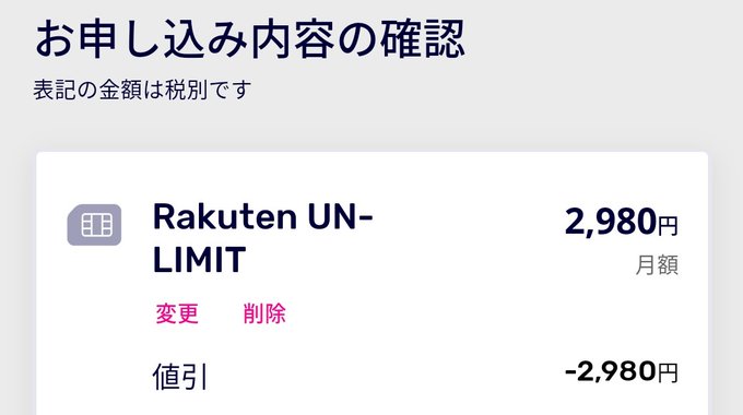 楽天モバイル Rakuten UN-LIMIT申し込み