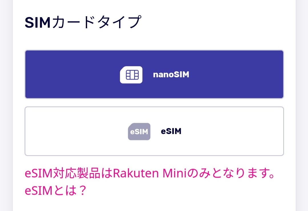 楽天市場のカートに入れるとき、SIMサイズ選ぶ場所がなかったんだけど選べるの?