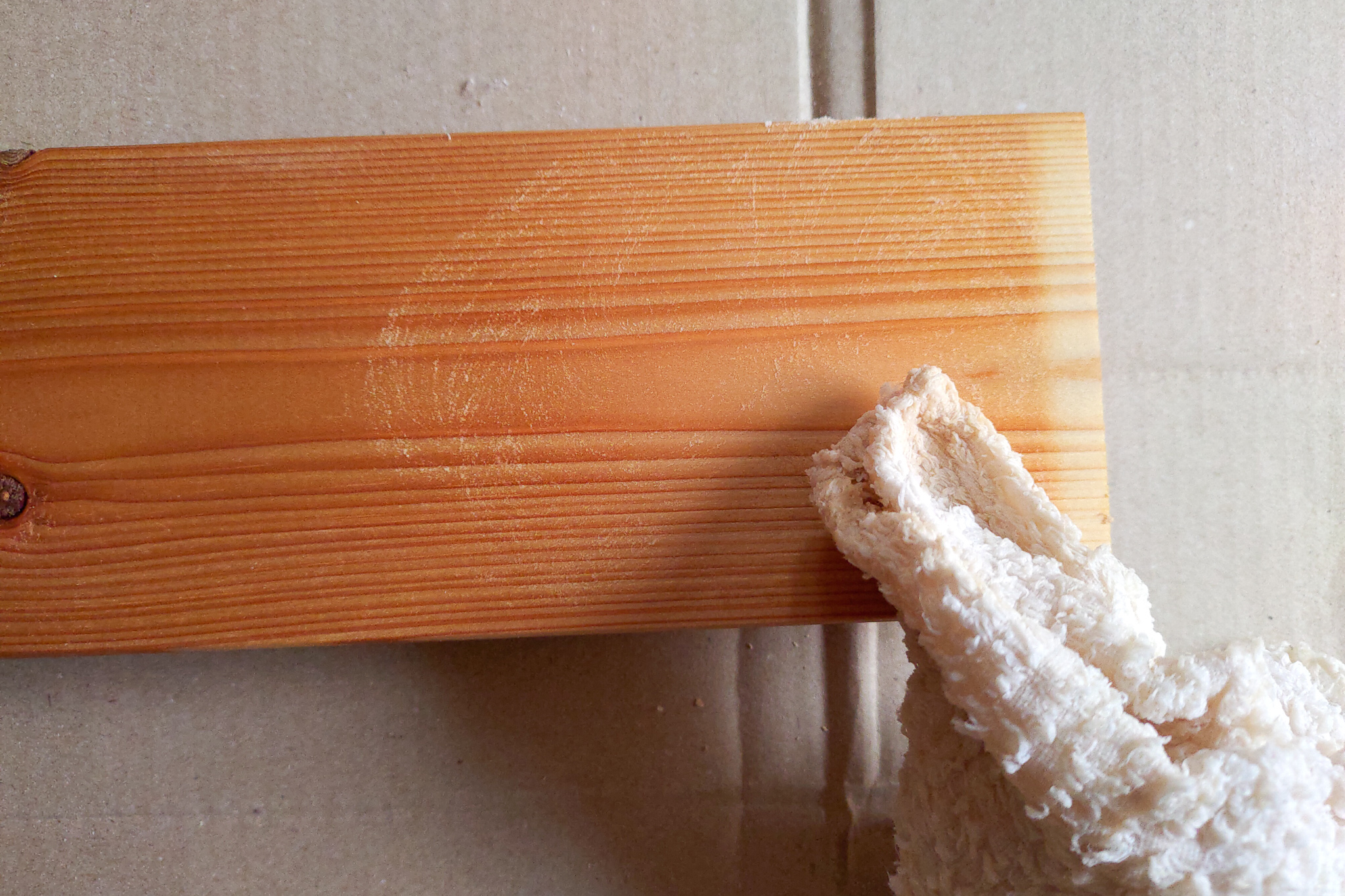 今回は、ホワイトウッドに蜜蠟ワックスを塗った木材で試していきます。