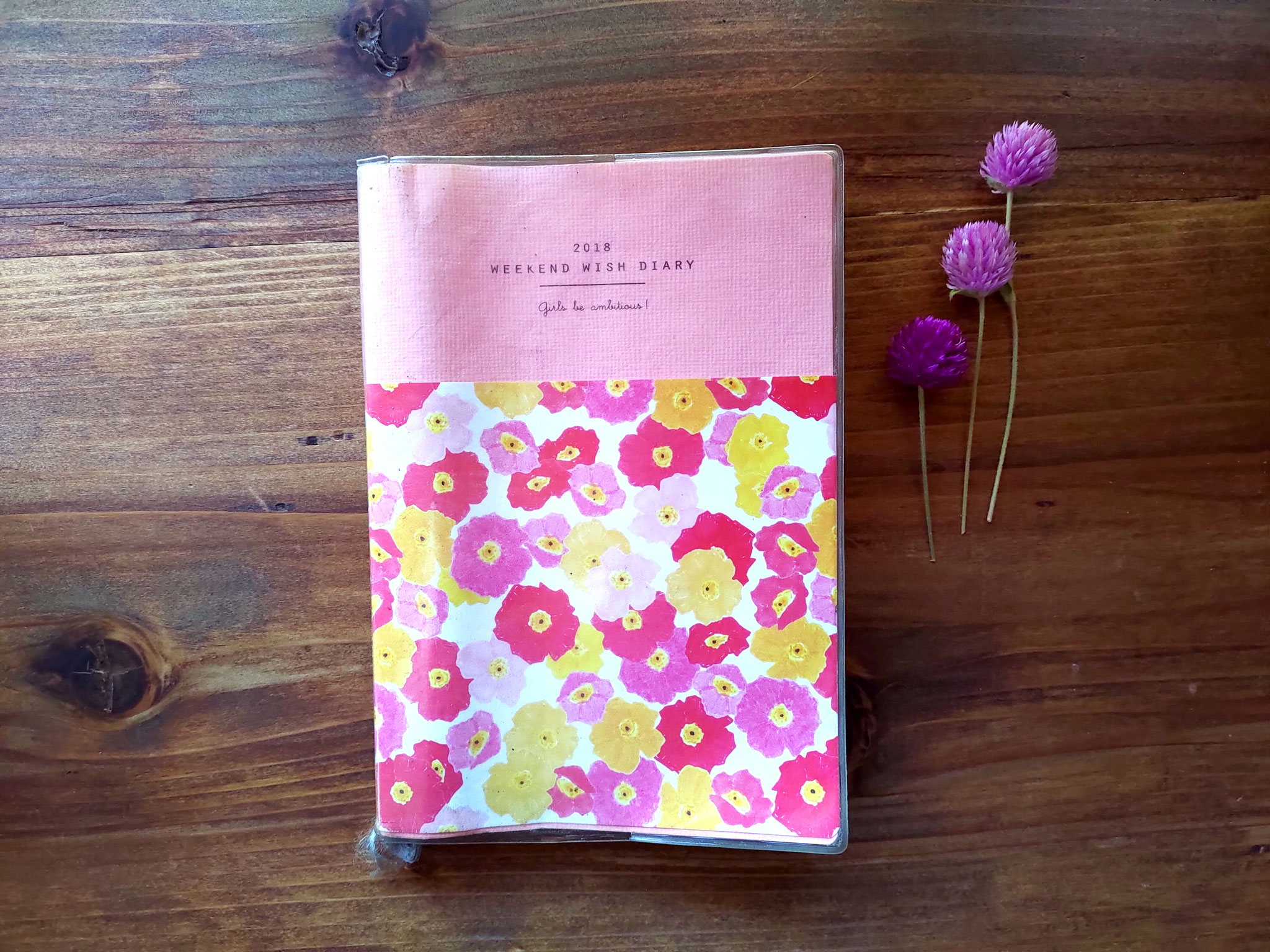 昨年の手帳の状況を見て、学校を卒業したら案外書くことが少なく、1日1ページは持て余すな~というわけで、探しだしたのがこの「週末野心手帳」。