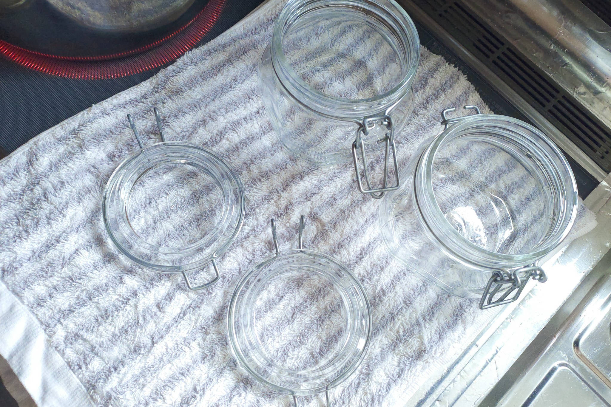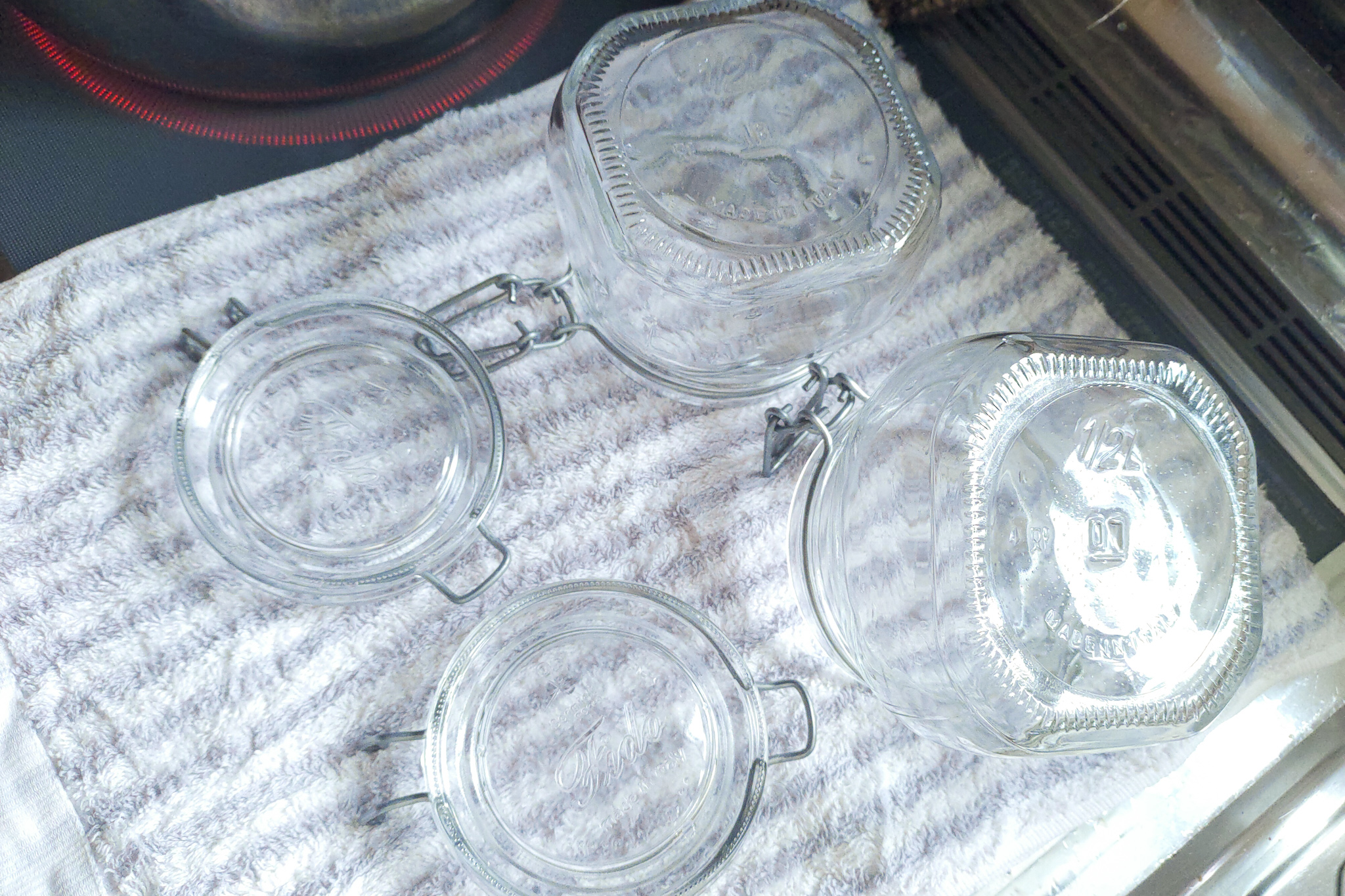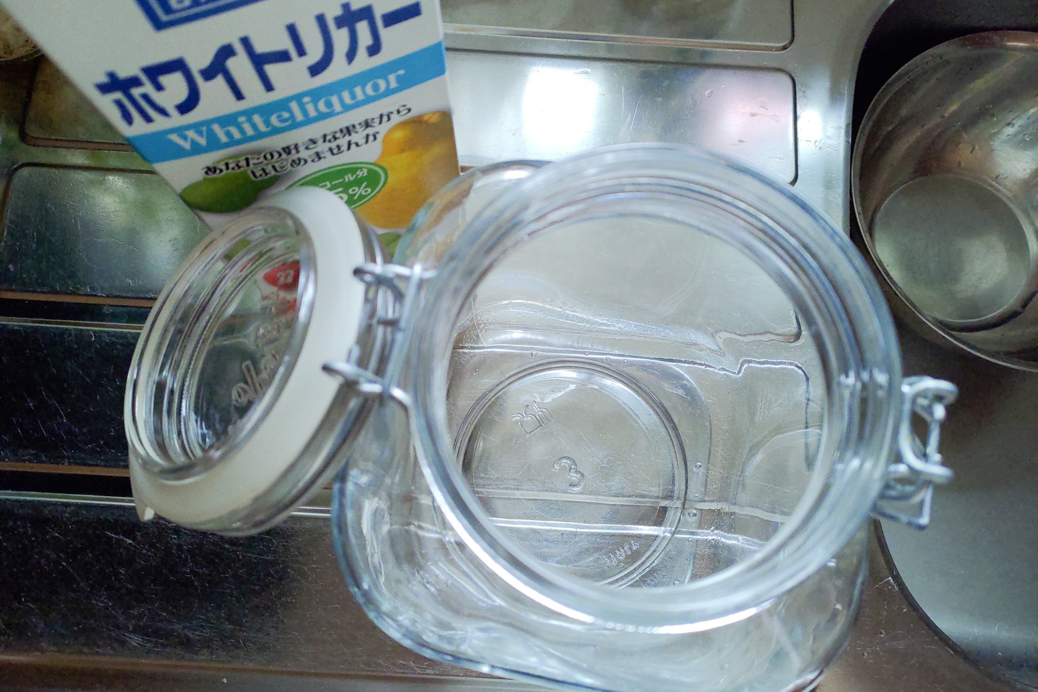 お鍋に入らなくて煮沸消毒できない容器(梅酒の容器とか)はこちらの方法で。