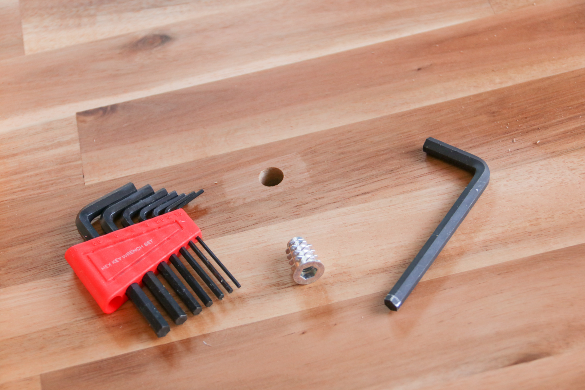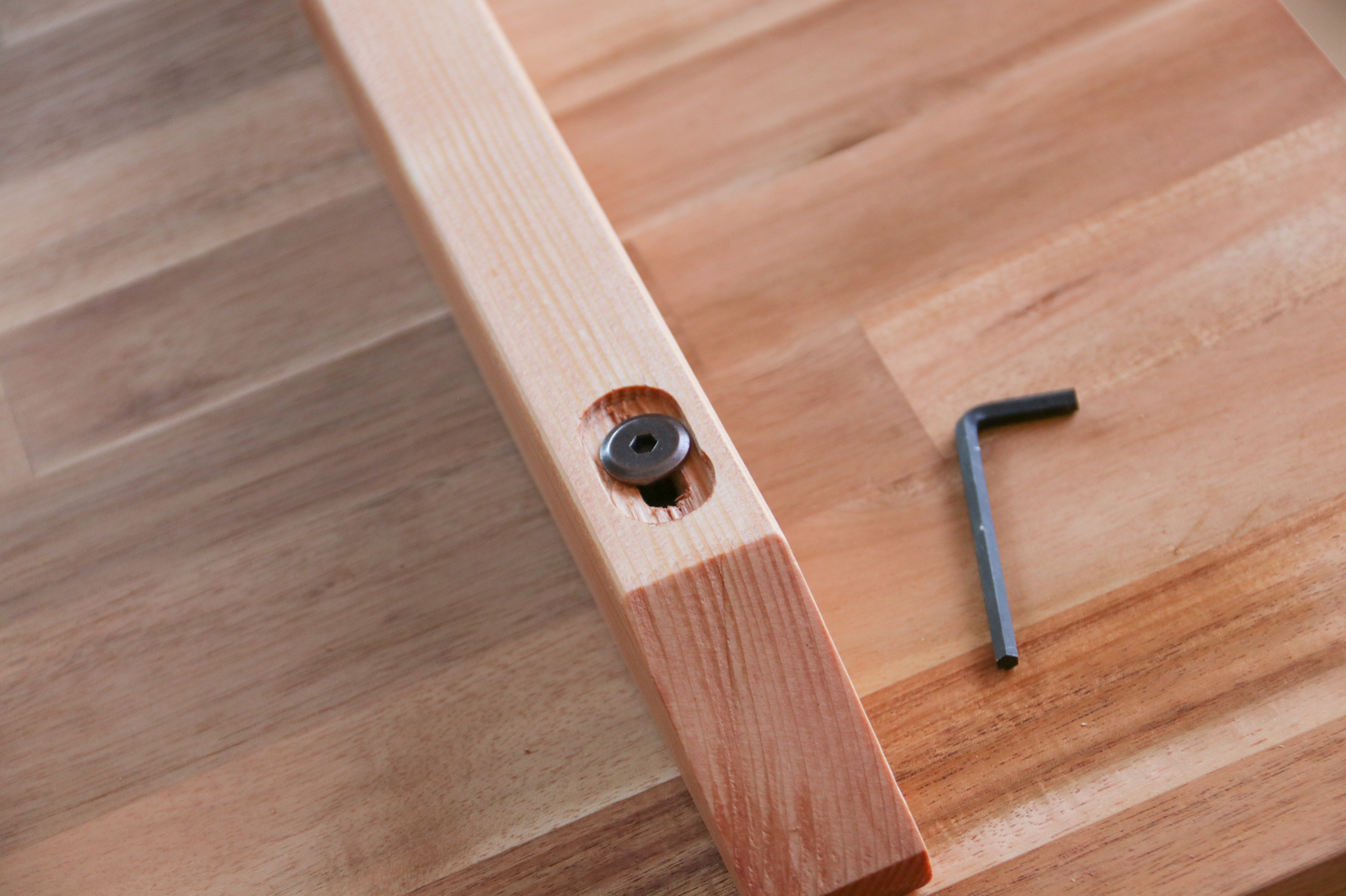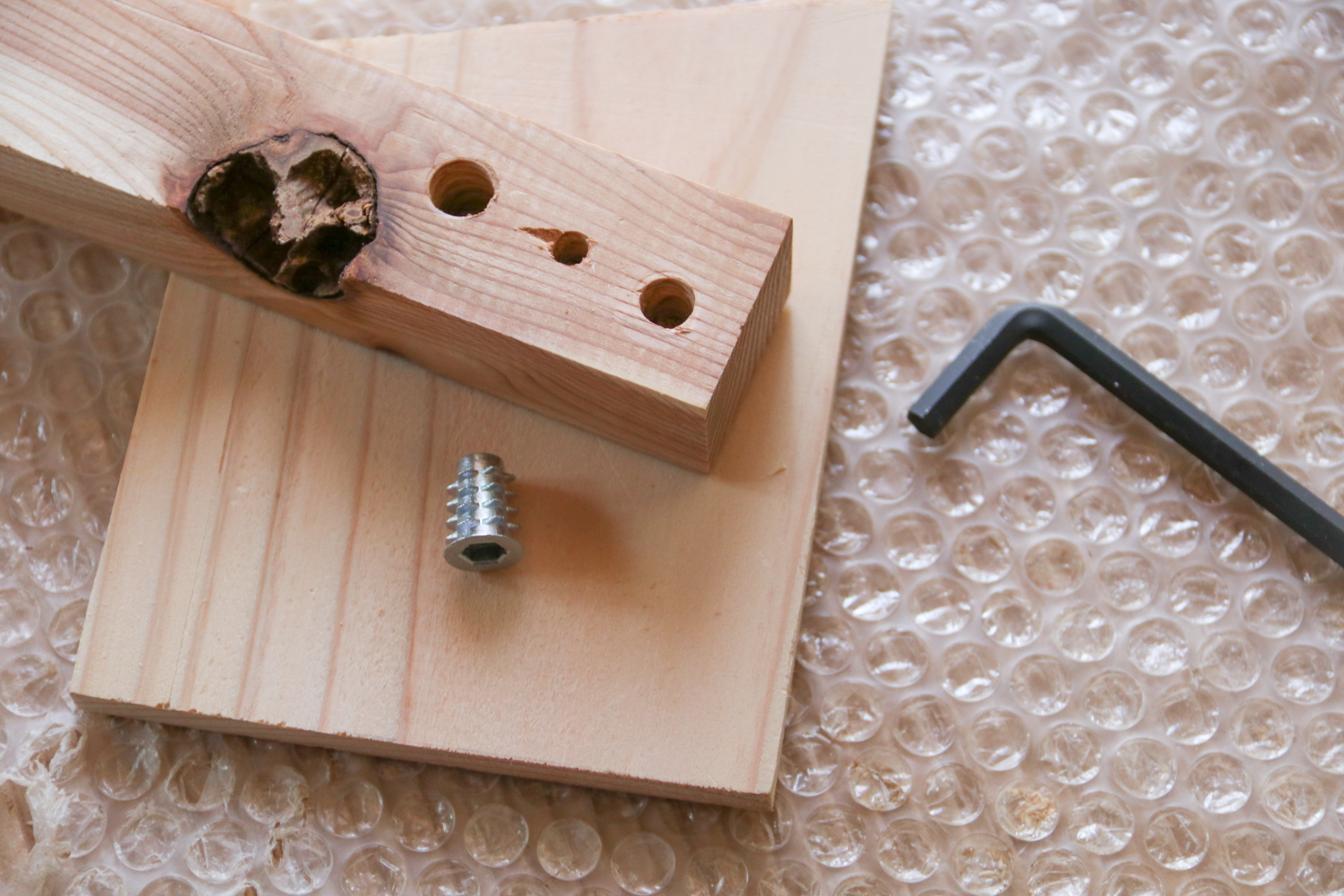 六角レンチを使って鬼目ナットを埋め込みます。