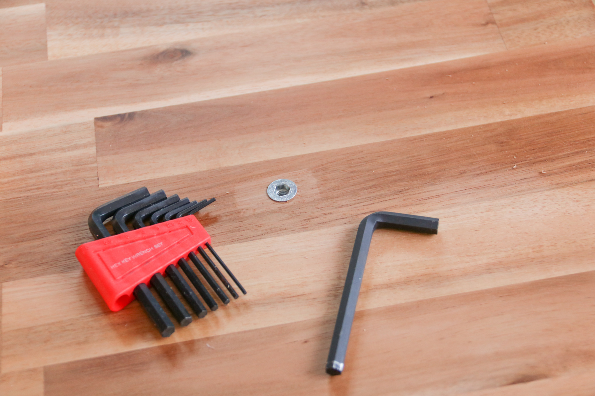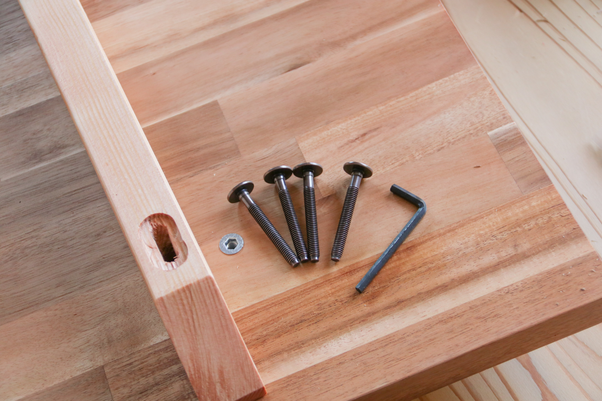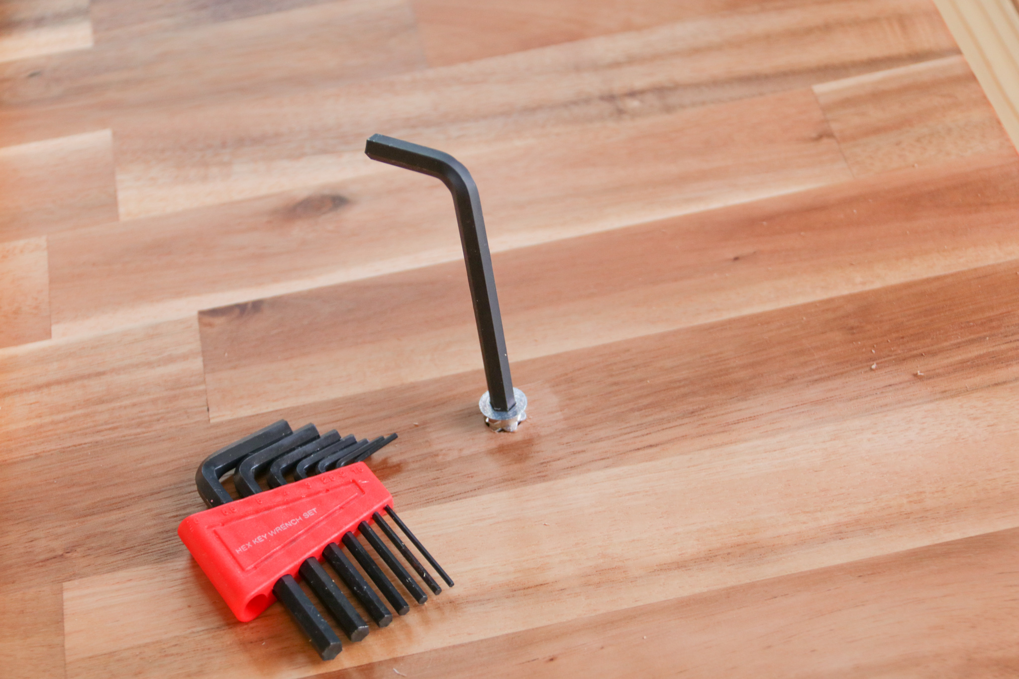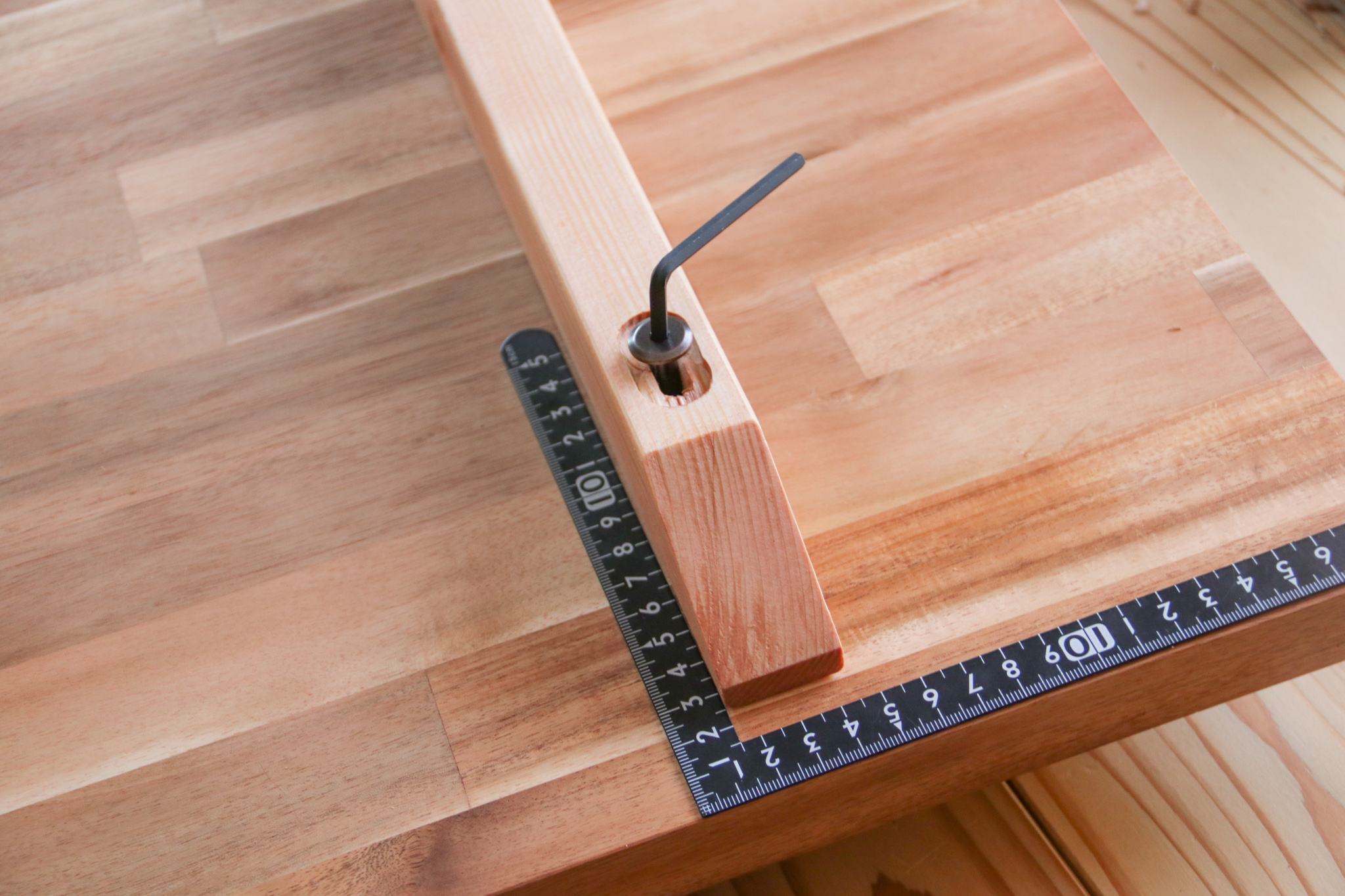 六角レンチを使って鬼目ナットを埋め込みます。