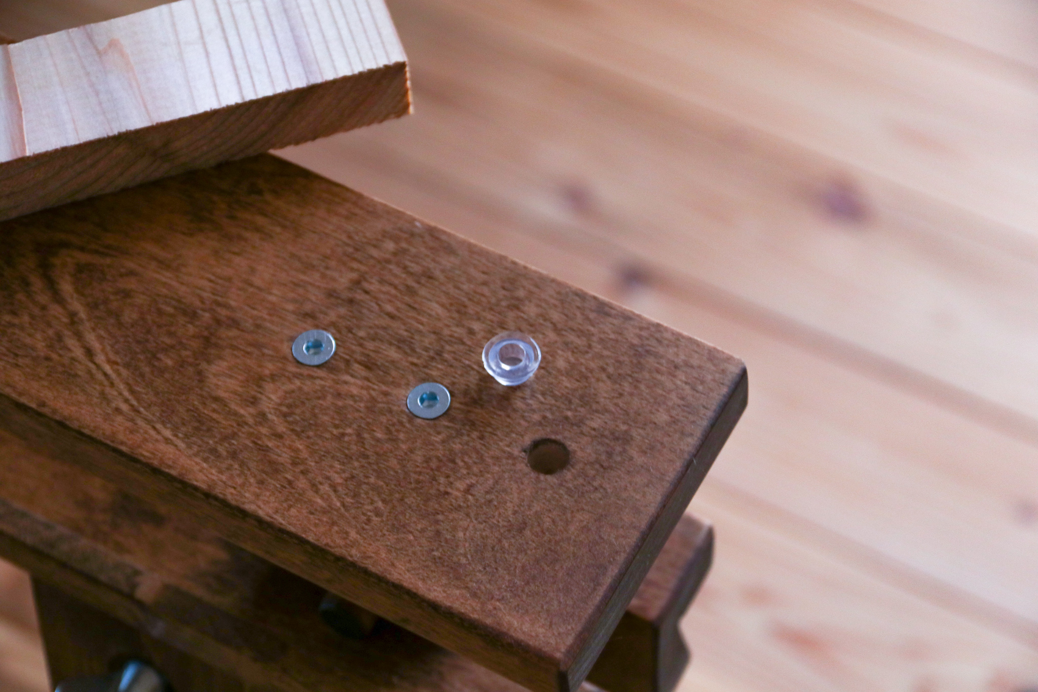 天板の裏側に、鬼目ナットをつけます。
