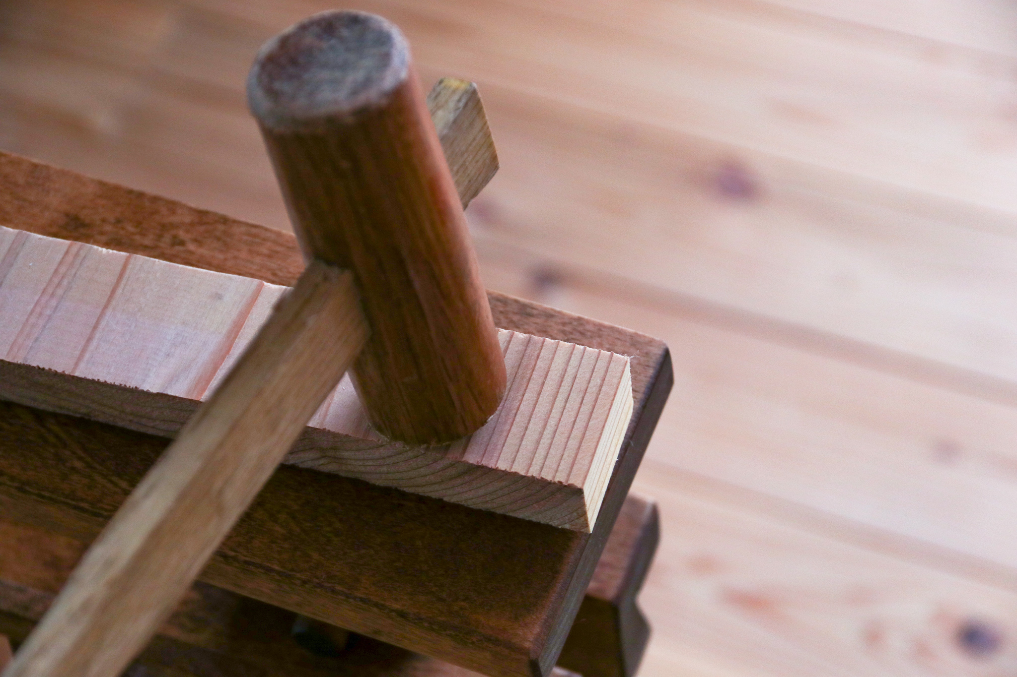 当て木をしてハンマーでコンコンと叩くと簡単に取り付けることができます。