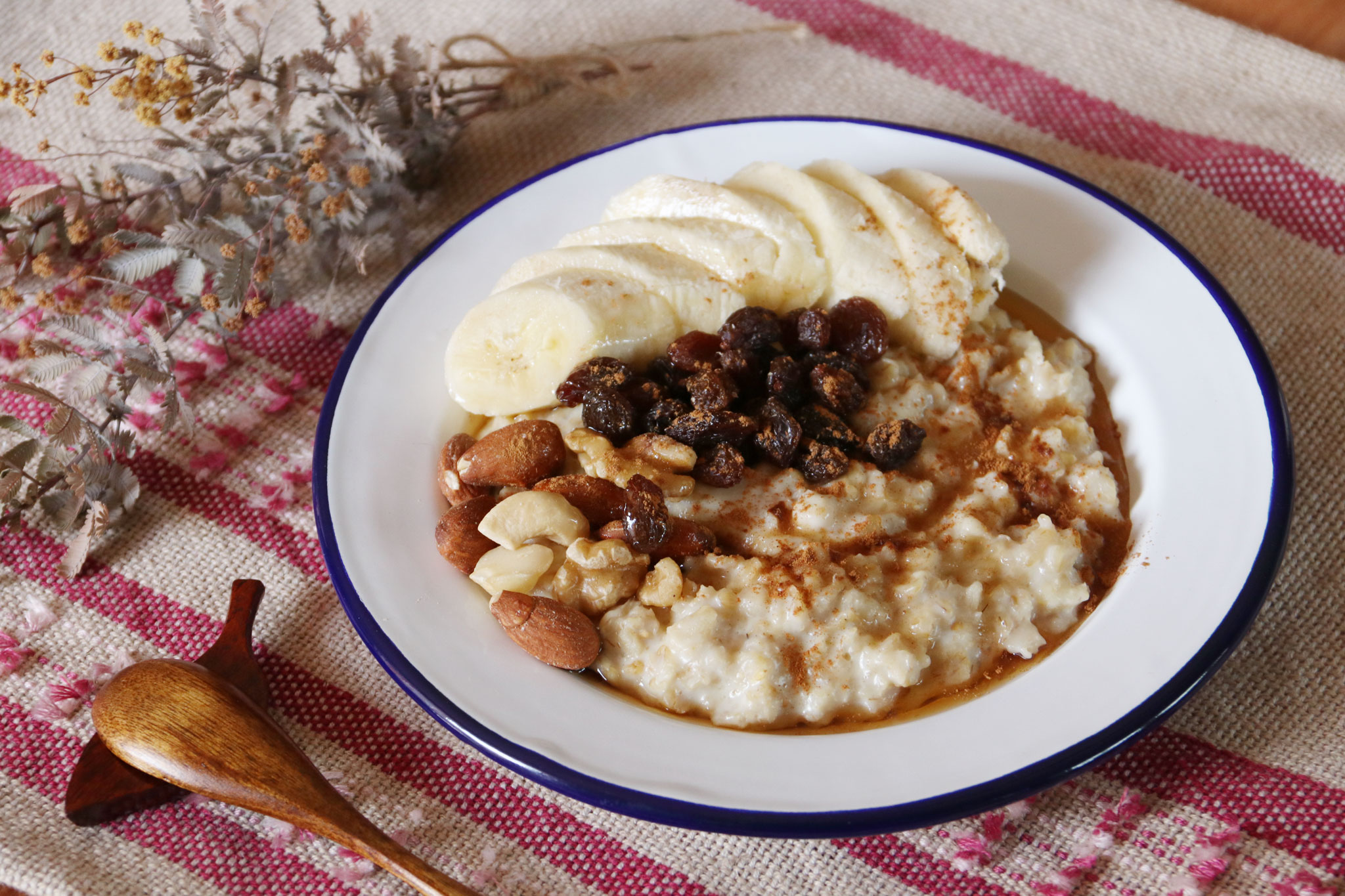 やっぱり朝ご飯は食べた方がいいんじゃない? ということで、タイミングよく手元にオートミールがあったのもあって、思い出しながら海外にいたときに出会ったビーガン(完全菜食主義者)の女の子が教えてくれた、オートミールの朝ごはんを作ってみました!